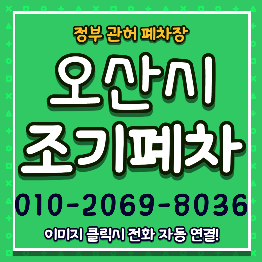 조기폐차에 대한 설명을 마치겠습니다. 저희 오산시조기폐차는 주말.공휴일 상관없이 24시간 연중무휴 베테랑 폐차 전문가와의 1대1 상담으로 궁금증을 해결해드리고 있습니다. 신속한 폐차 업무를 원하시는 분은 아래 이미지에 보이는 번호로 언제든지 연락주세요!